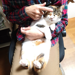 夫の膝の上でちょっとだけ大人しい杏