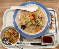 夫が長崎ちゃんぽんにするというので、私はそれにセットで餃子とミニチャーハンを頼む