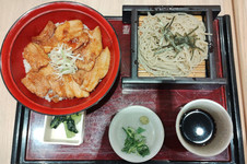 夫は豚丼セット、私はざるそばかやくご飯セット