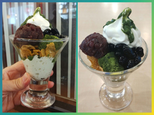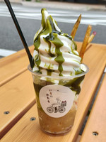 帰りに「いものかたち」で今月までの焼き芋抹茶ソフト買って、店の前のベンチで食べた
