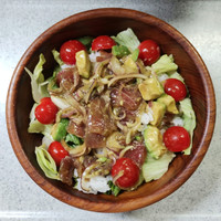 夕飯はガパオライス目玉焼きとレタス中心のサラダ
