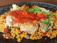 ソースをかけたところと、切ったところ