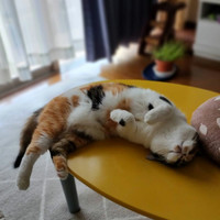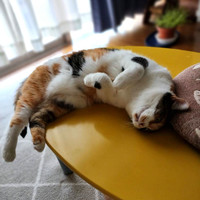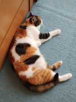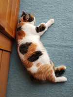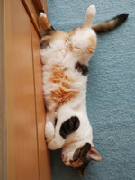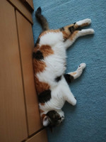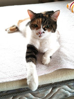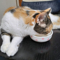 写真は寝てるとこ隣に置いたら起き上がりもせず横着して舐めてるの図