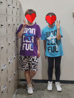 TシャツがC枝ちゃんとお揃いの色違いだったので記念撮影