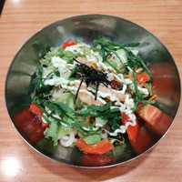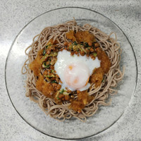 夕飯は納豆大根おろし蕎麦、レタスとちくわのサラダ