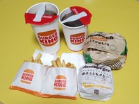 夫はチーズバーガーのセット、私はパイナップルを月に見立てた月見バーガー(小)セット