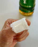 無意識に使っちゃって「痛っ」ってなるので、コットンパフとセロテープで目立つようにした