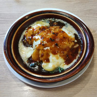 夕飯は豚肉玉葱シメジ炒め温泉たまご乗せ