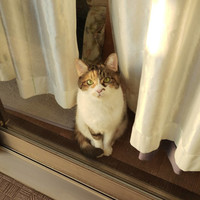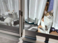 杏の日向ぼっこをベランダから撮る