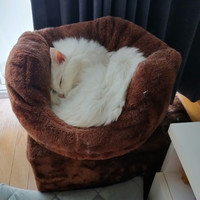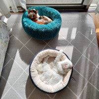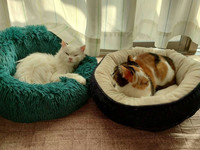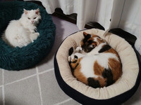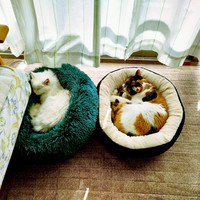 昼間は太陽が入る窓際で、それぞれのベッドで寝る