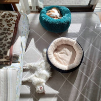 ベッドを2つ並べたら一緒に日向ぼっこすることが多い