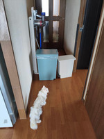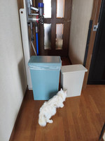 麗がドア近くに行かないようにゴミ箱でバリケード(笑)