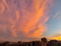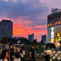 燃えてるような夕空に月も見える