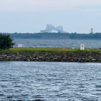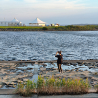会場を出て海の方に向かう途中の建物