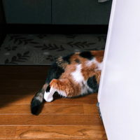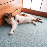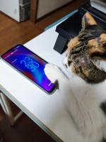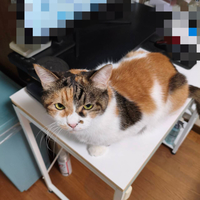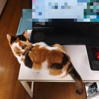 猫の左の茶色いポッチ、自分のスマホかと思ったらタブレットの汚れだった
