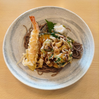 私はさつま芋と秋野菜のかき揚げ冷しおろし蕎麦