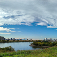 隅田川の河口方面、雲が凄いね