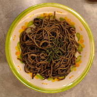 夕飯は蕎麦、ゆで卵、冷凍かき揚げ