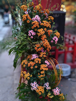 駅前のデッキの上の花壇のコスモスが光ってキレイ✨