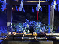 昨日だけど樹モールプラザから駅に向かう道に紅葉を土ごと持ってきててライトアップ