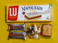 箱の中身は左の2個だと思うんだけど、チョコとビスケットも入ってた