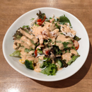 いつもの季節の14品目サラダと南高梅とチキンのピザ
