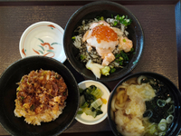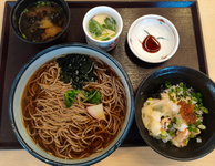 夫は小炙りトロサーモン丼と温かい蕎麦セット