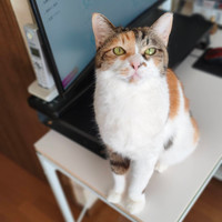 帰宅すると杏は私の後を泣きながら付いて回り、私のPCデスク用の椅子の、私と背もたれの間がお気に入りのようです。