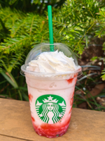 先週飲めなかった「スターバックスストロベリーフラペチーノ」をいつもの外で飲む